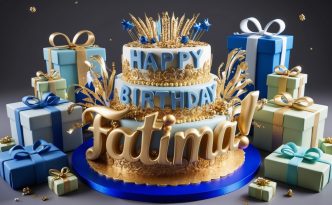 Happy Birthday Fatima! Hourlong birthday greeting to wish happy birthday to a lovely lady called Fatima in shades of blues and golds.